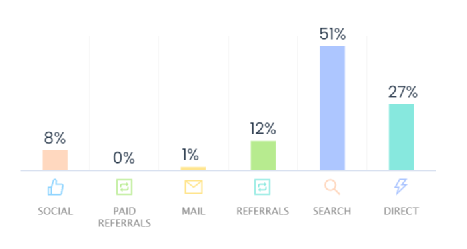 搜索流量:引流占比高达51%,其中包括自然搜索流量以及前面的付费流量。
