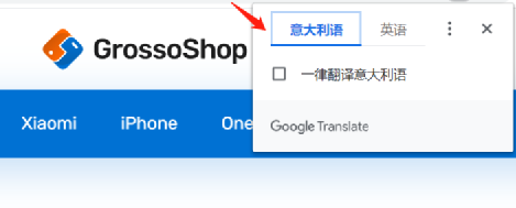 店铺语言设置也是亮点。主推市场是意大利,因此网站默认语言是意大利语,需要时自行翻译成英语。语言本地化可以很好增加客户在网站浏览时间,从而增加购买欲望。